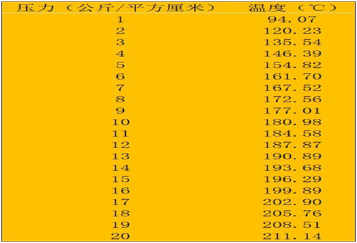 飽和蒸汽的溫度與壓力之間一一對應,二者之間只有一個獨立變量。理想的飽和蒸汽狀態,指的是溫度、壓力及蒸汽密度三者存在一一對應的關系,知道其中一個,其他二個值就是定數。存在這種關系的蒸汽就是飽和蒸汽,并存在飽和蒸汽壓力與溫度對照表。標準的飽和蒸汽壓力與蒸汽溫度對照表是根據國際單位制進行編制的,即壓力單位為MPa,溫度單位為℃。