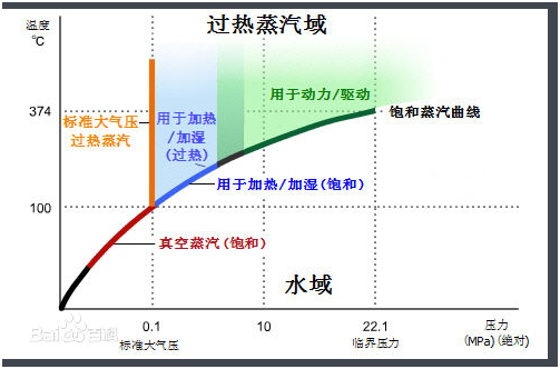飽和蒸汽在很多行業具有很廣的用途。在化工領域,蒸氣常被當做熱源,氣壓在0.1 - 5 MPa,溫度在110-250℃,一般是飽和蒸汽。在火電和核電領域,蒸汽被用來做驅動渦輪機的驅動力。亞臨界發電:氣壓17MPa,溫度540℃,過熱蒸汽。超臨界發電:氣壓30MPa,溫度為600℃。核電一般用高壓飽和蒸汽。在醫療領域,被用于高溫消毒,氣壓0.7MPa,溫度160℃,過熱蒸汽。,化工廠一般用于化料、加熱儲罐、加熱反應釜,溫度一般在120以上。食品高溫殺菌,一般在100-150℃,超高溫殺菌指加熱溫度為135~150℃。